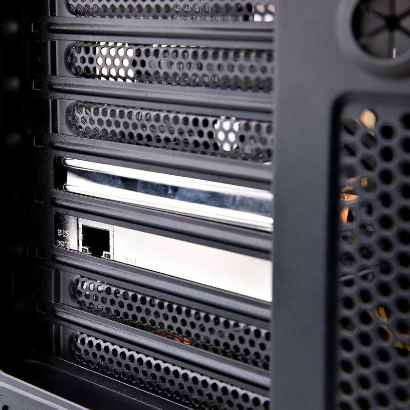 The network interface card connects to an available x1 PCIe 2.1 (or higher) expansion slot. The card is shipped with a standard-profile bracket. It includes a low-profile bracket for installation in various computer chassis. Access up to 2.5 Gbps (NBASE-T) speeds using Cat5e cabling to utilize existing networks and equipment.