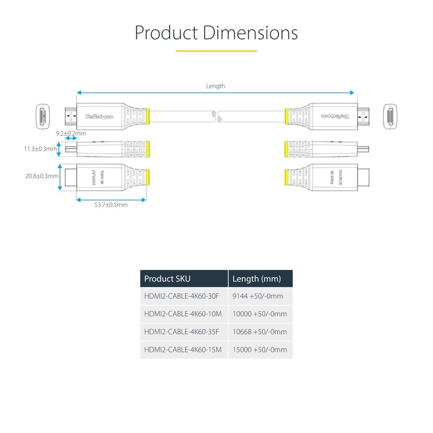 Connect to a 4K UHD TV or monitor, using this HDMI 2.0 Cable. The connector markings enable quick visual identification, distinguishing this cable from other similar-looking or unmarked HDMI cables. Eliminate guesswork and always choose the appropriate cable to support full HDMI 2.0 with Ethernet capabilities.