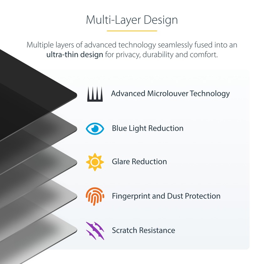 StarTech.com 14-inch 16:9 Flip-Over Privacy Screen with Touch, Anti-Glare Privacy Filter, Laptop Monitor Screen Protector with 51% Blue Light Reduction