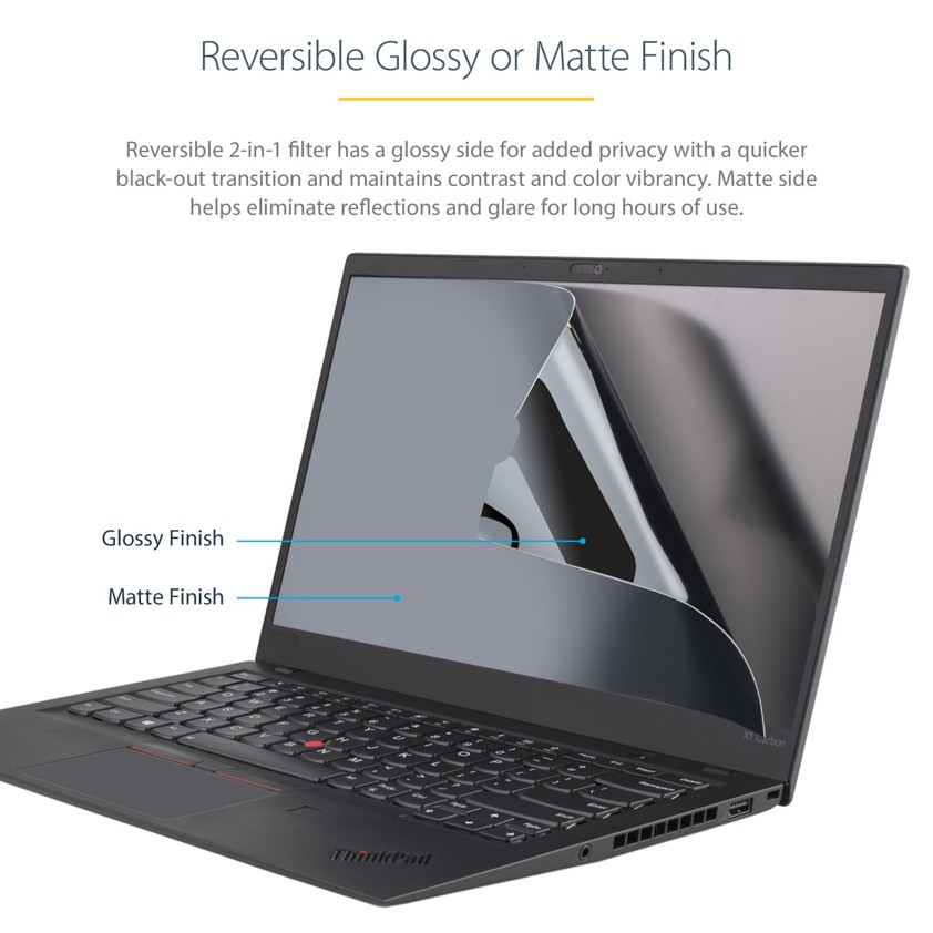 StarTech.com 14in Laptop Privacy Screen - Anti-Glare Privacy Filter for Widescreen (16:9) Displays - Laptop Monitor Screen Protector with 51% Blue Light Reduction - Reversible Matte/Glossy Sides