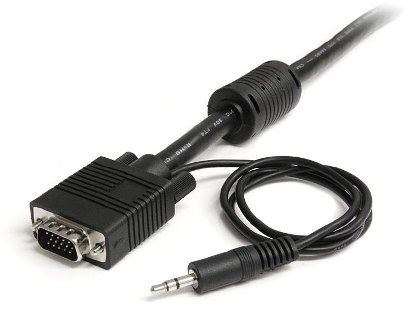 StarTech.com’s high resolution VGA cable with audio features high quality male-to-male coaxial VGA cable, and is designed to eliminate picture "ghosting" and fuzzy images that are inherent to non-coaxial cables, while providing superior EMI interference protection by using ferrite cores near the connector ends.