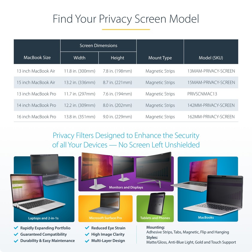StarTech.com 16-inch MacBook Pro 21/23 Laptop Privacy Screen, Removable and Reversible Anti-Glare Privacy Filter, Magnetic Laptop Screen Protector w/ 51% Blue Light Reduction