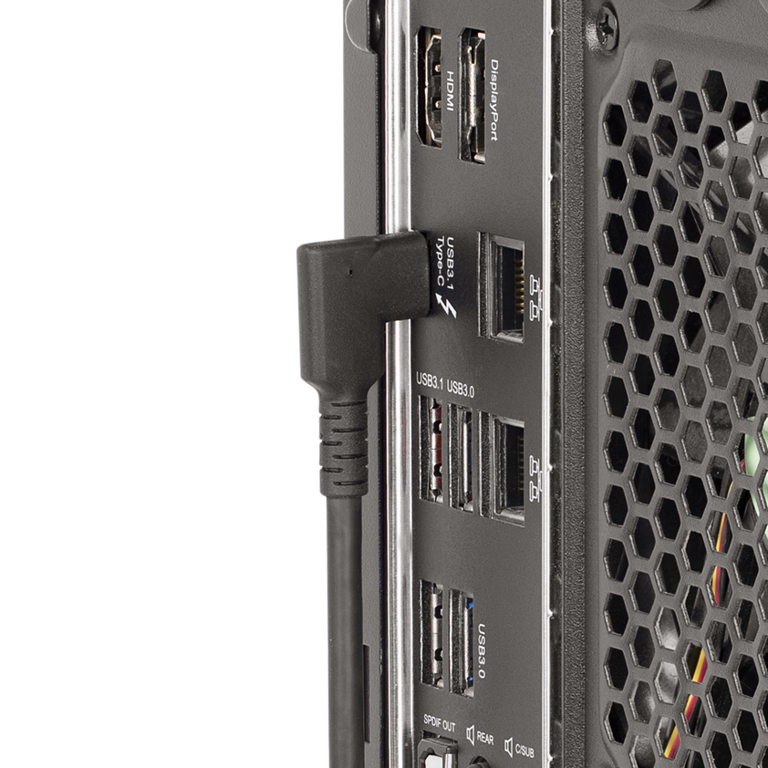Connect USB 10 Gbps source and peripheral devices, using this 1.6ft (50cm) Rugged Right Angle USB Type-C Cable. Position the right angle USB-C connection along the device to reduce cable clutter and avoid prolonged strain from bending.