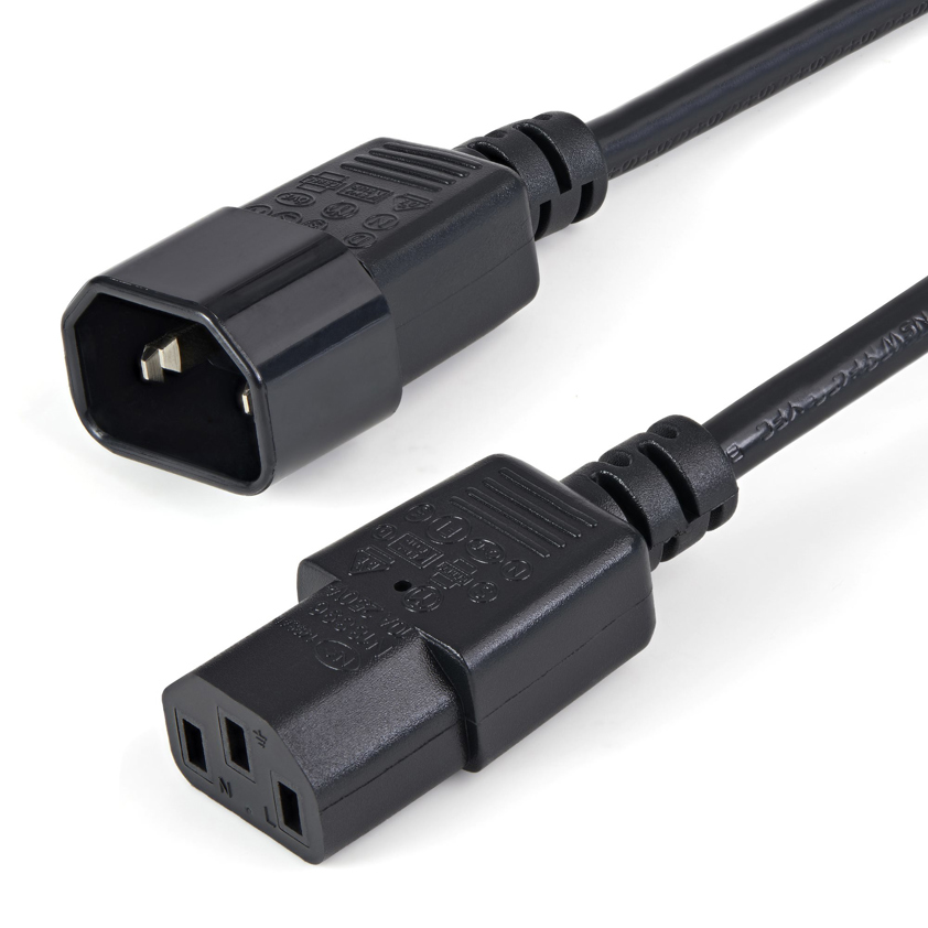 StarTech.com 1m (3ft) Power Extension Cord, C14 to C13, 10A 125V, 18AWG, Computer Power Cord Extension, IEC-320-C14 to IEC-320-C13 AC Power Cable Extension for Power Supply, UL Listed