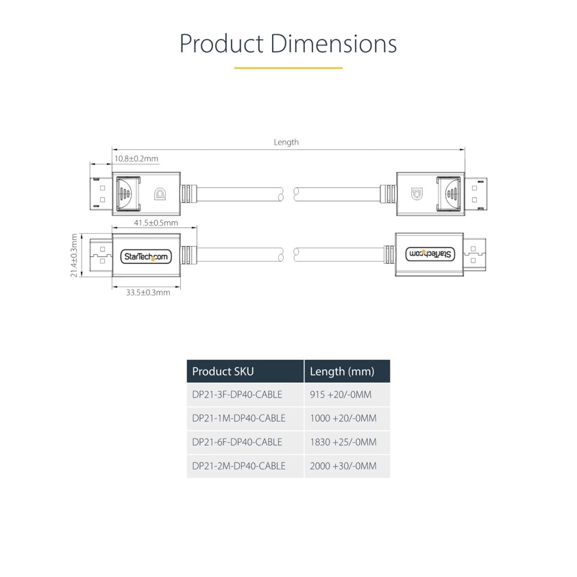 StarTech.com 1m DisplayPort 2.1 Cable, VESA Certified DP40 DisplayPort Cable w/UHBR10/HDR/HDCP 2.2, 8K 60Hz/4K 144Hz w/DSC 1.2a, 40Gbps, DP 2.1 Cable, UHD Monitor Cord, M/M