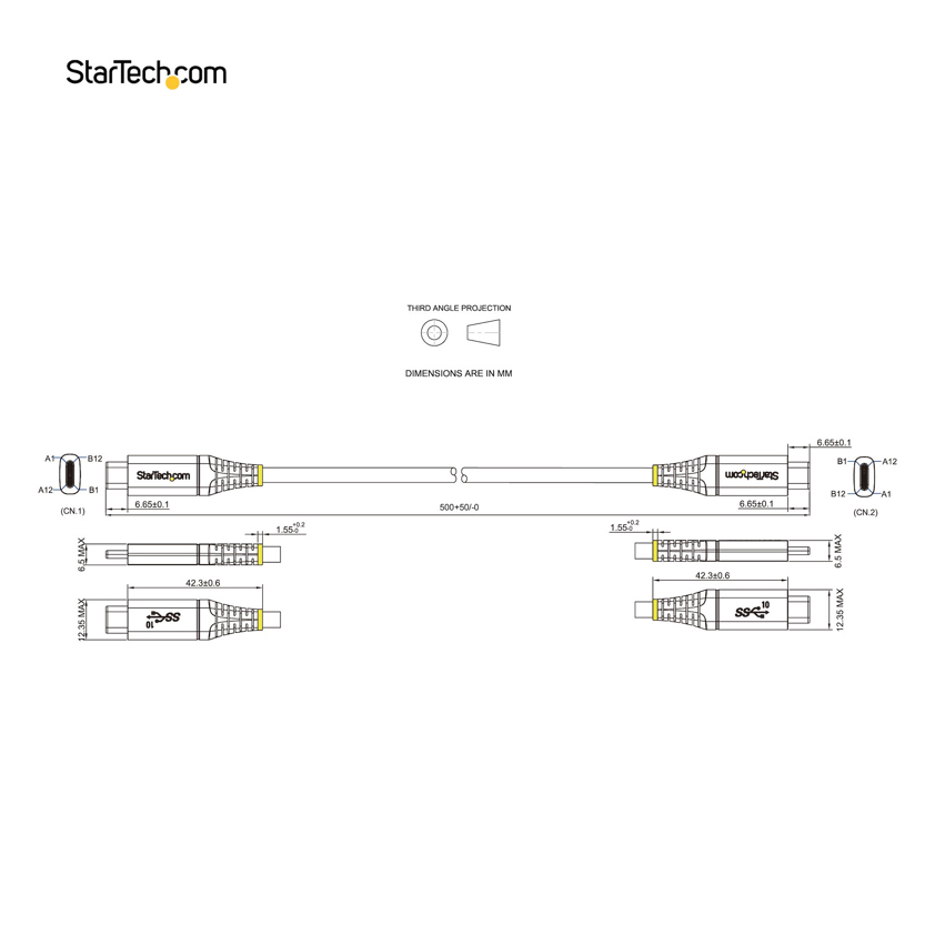 StarTech.com 20" (50cm) USB C Cable 10Gbps - USB 3.1 Type-C Cable - 100W (5A) Power Delivery Charging, DP Alt Mode - USB-C Cord for USB-C Laptop/Phone/Device - Charge/Sync