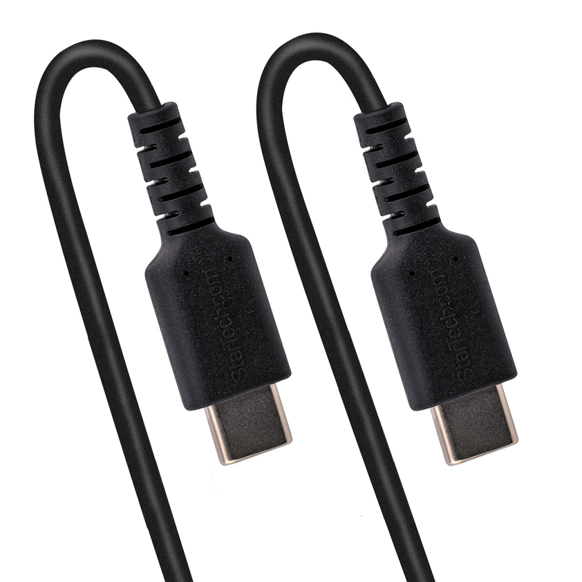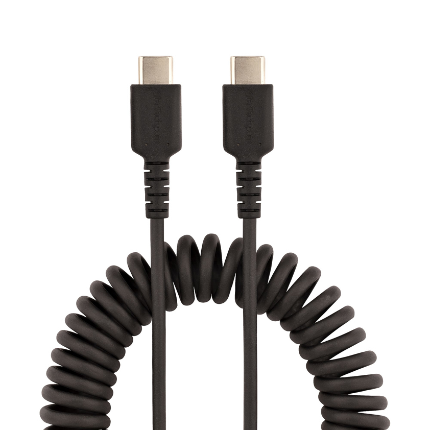 • StarTech.com 20in (50cm) USB C Charging Cable, Coiled Heavy Duty Fast Charge & Sync USB-C Cable, USB 2.0 Type-C Cable, Rugged Aramid Fiber, Durable Male to Male USB Cable, Black