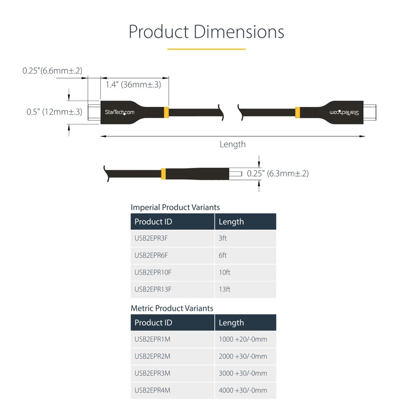 Designed for frequent use, the USB-C EPR Charging Cable features a rugged TPE outer jacket for increased wear resistance. The durable nickel-plated connectors are rated to operate beyond 10,000 insertion cycles, enhancing its durability and longevity.