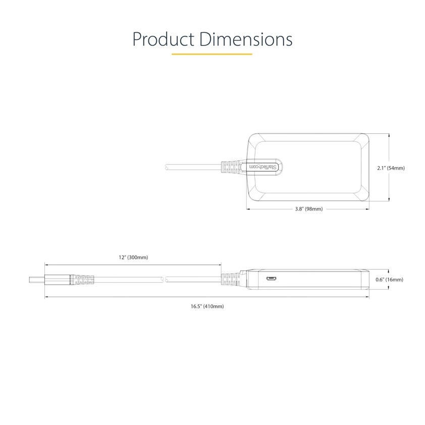 This device is OS independent, supporting all operating systems, including Windows, macOS, ChromeOS, and Android. The Hub is automatically detected, configured, and installed upon connection to a host computer, such as Apple MacBook, Lenovo X1 Carbon, and Dell XPS. The extra-long built-in 1ft. (30 cm) USB-A host cable enables quick and convenient setup and reduces connector strain on 2-in-1 devices, such as the Surface Pro 7 and laptops on riser stands.