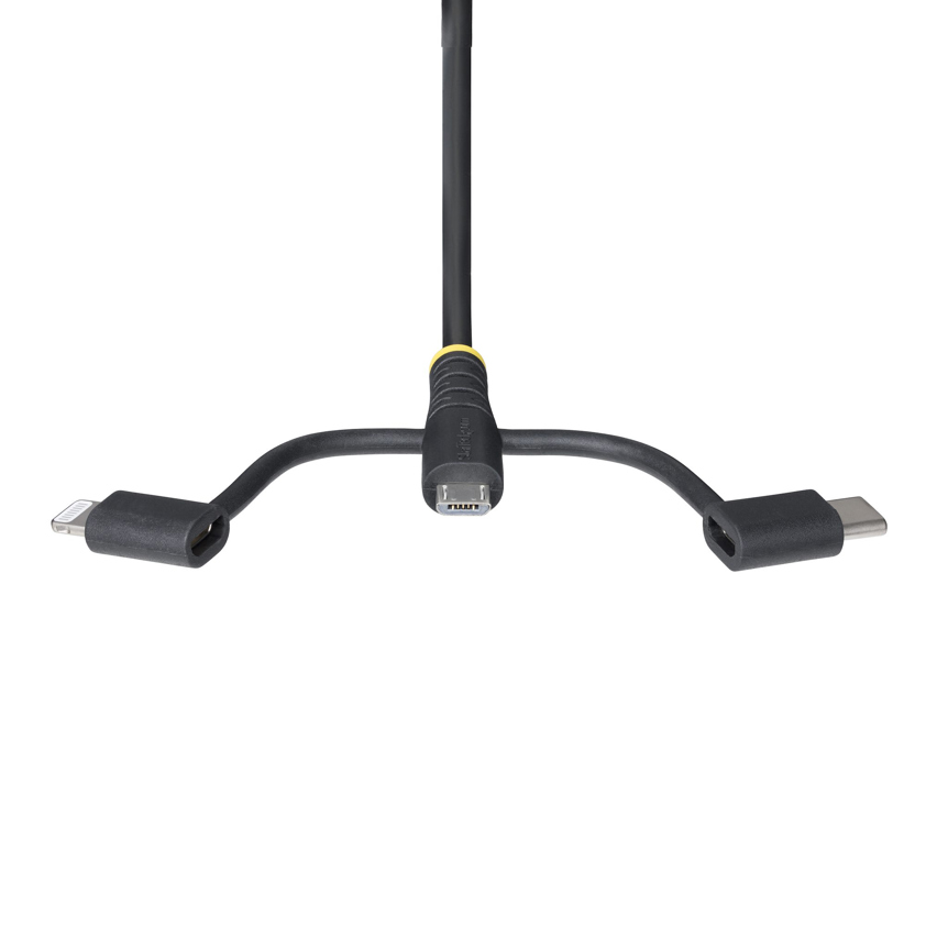 StarTech.com 3.3ft (1m) Rugged USB Multi Charging Cable, USB to Lightning/Micro-USB/Type-C, Apple MFi Certified, Aramid Jacket, Universal 3-in-1 USB Charger Cord for iPhone/iPad/Android