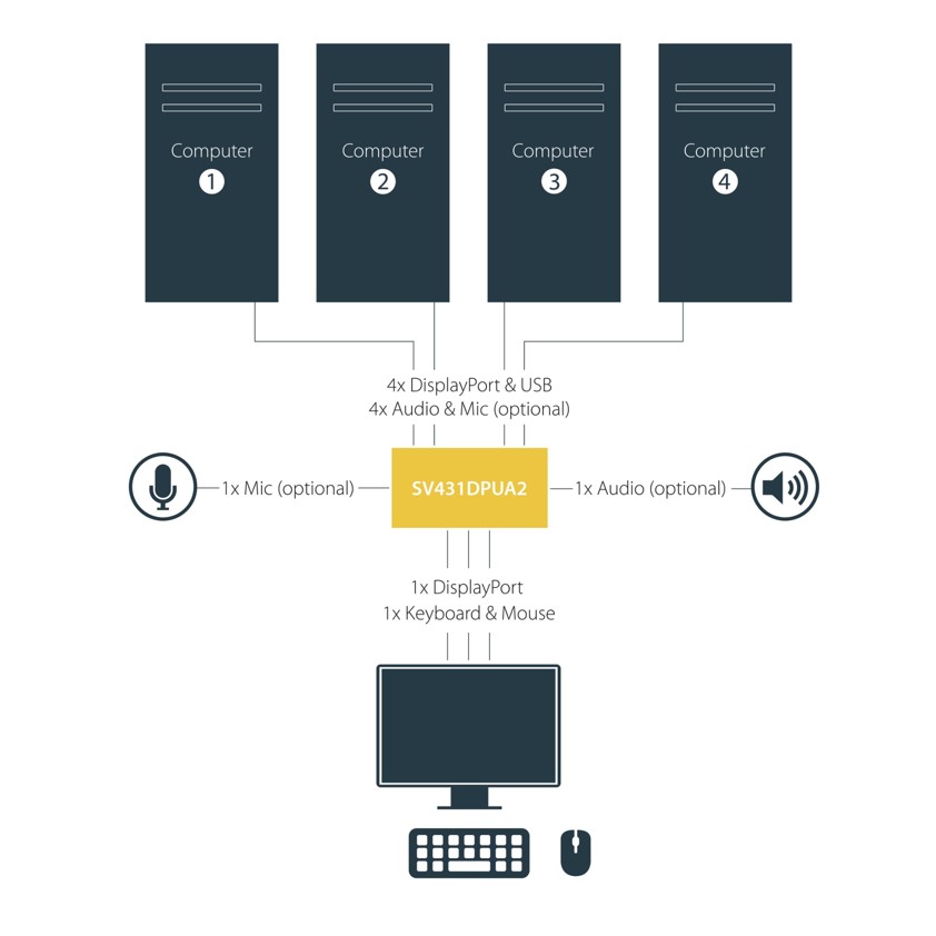 DisplayPort 1.2 KVM | TAA Compliant | USB 2.0 Hub | 7.1 HD Digital Audio