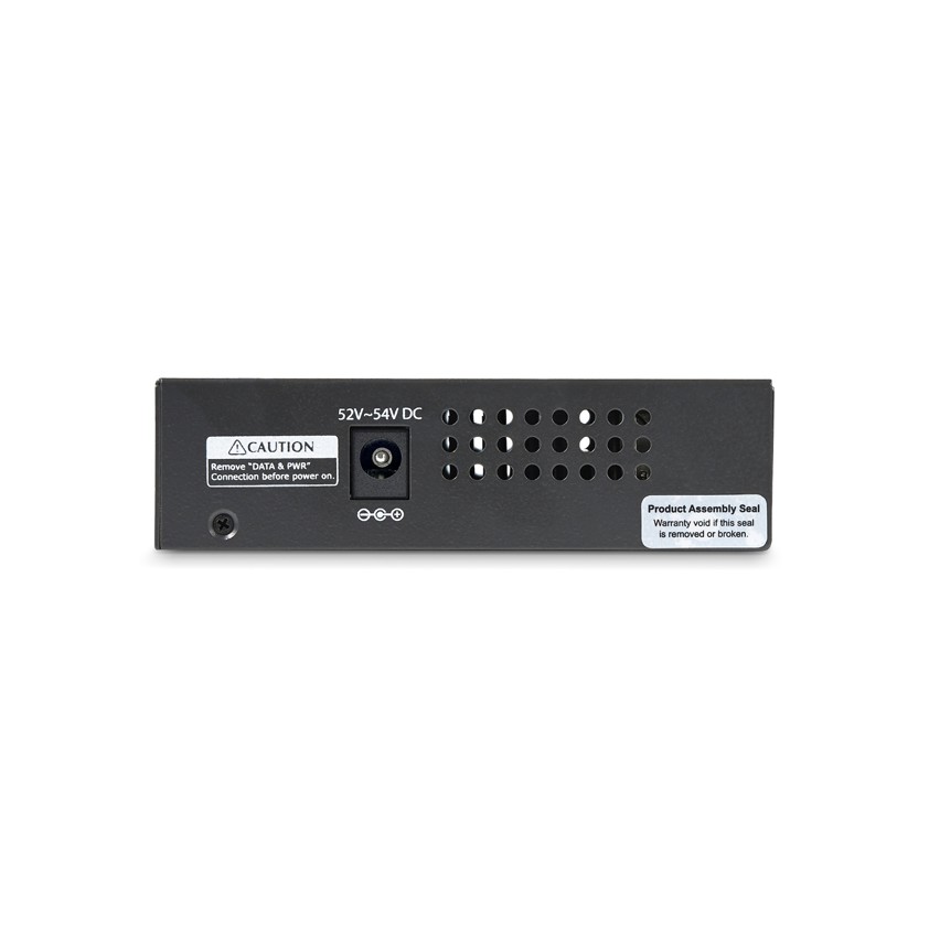 Performance Duplex system Full Plug and Play Yes Type Network transmitter Maximum transfer distance 100 m Power over Ethernet (PoE) Yes Data transfer rate 2000 Mbit/s Mean time between failures (MTBF) 50000 h Auto MDIX IEEE Yes Auto-negotiation Yes Network Cabling technology 10/100/1000Base-T(X) Networking standards IEEE 802.3, IEEE 802.3ab, IEEE 802.3af, IEEE 802.3at, IEEE 802.3u Ports & interfaces Power over Ethernet (PoE) ports quantity 4 DC-in jack Yes Ethernet LAN (RJ-45) ports 8 Design Housing material Steel LED indicators PoE, Power Certification CE, FCC Product colour Black Power Power consumption (max) 120 W Power plug type Type M Power over Ethernet (PoE) Yes AC input voltage 100 - 240 V Output voltage 52 V Output current 2.31 A Operational conditions Operating temperature (T-T) 0 - 50 °C Storage temperature (T-T) -10 - 70 °C Operating relative humidity (H-H) 5 - 95% Weight & dimensions Width 70 mm Depth 94 mm Height 26 mm Weight 204 g Packaging content AC adapter included Yes Manual Yes Cables included AC Packaging data Package width 180 mm Package depth 305 mm Package height 90 mm Package weight 1.63 kg Technical details Duplex system Full Plug and Play Yes LED indicators PoE, Power Type Network transmitter Maximum transfer distance 100 m Power over Ethernet (PoE) Yes Data transfer rate 2000 Mbit/s Auto MDIX IEEE Yes Auto-negotiation Yes Harmonized System (HS) code 85176990 Compliance certificates RoHS Colour Product colour Black Endurance Mean time between failures (MTBF) 50000 h Certificates Certification CE, FCC Compliance certificates RoHS Logistics data Harmonized System (HS) code 85176990 Your parcel will arrive within 5 business days (excluding weekends and public holidays) after you place your order. Items are shipped in working days only, your order may arrive anytime between 7am and 9pm. Deliveries are not made on public holidays, so you can expect your order to arrive the next working day.