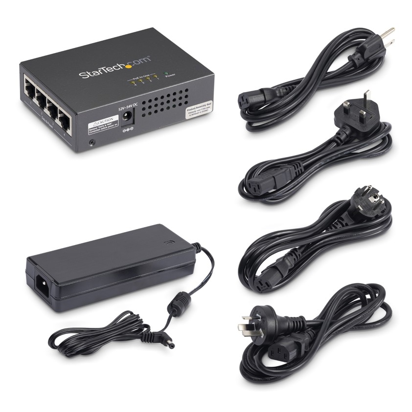 StarTech.com 4-Port Gigabit Midspan - PoE+ Injector - 802.3at/af