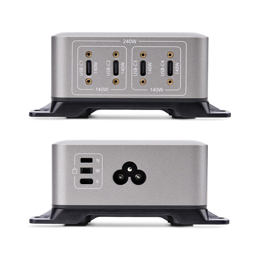 StarTech.com 4-Port Multi-Device USB-C Charger, 240W Total, Single Port 140W EPR, PD 3.1, Screw Locking Ports, Boardrooms, Bracket incl. for Surface Mounting