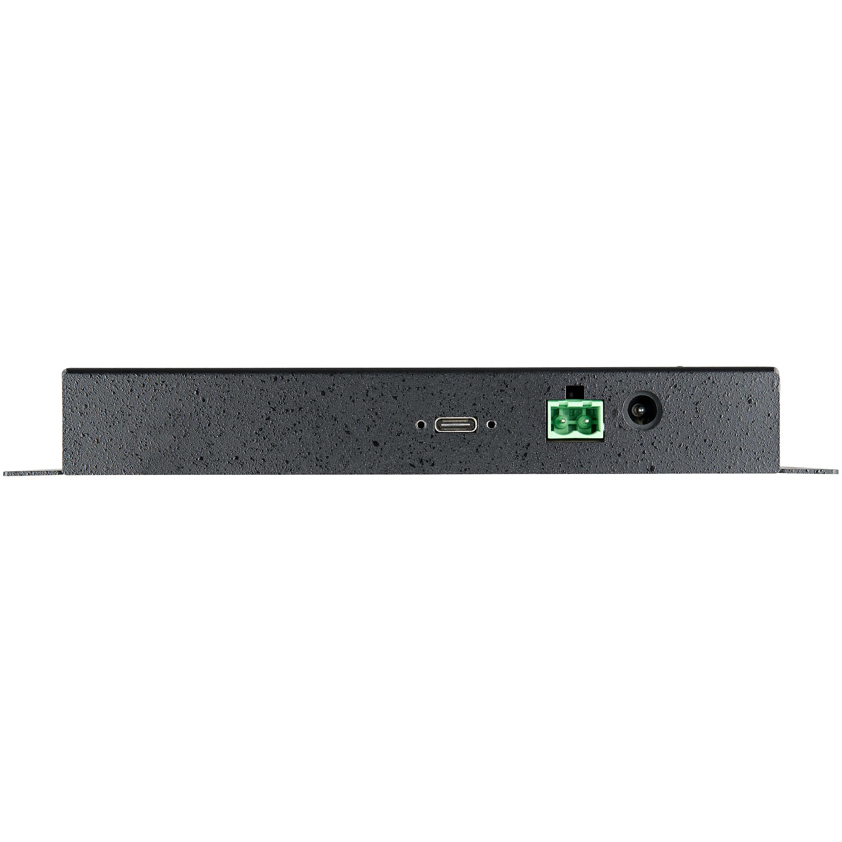 This USB hub has a rugged-metal enclosure with built-in mounting ears that enable you to mount it to any wall or surface. The hub features 15kV Air and 8kV Contact electrostatic discharge protection, with 350W surge protection. Each port on the Hub has a screw lock, avoiding the possibility of accidental cable disconnection and a 3.3 ft (1m) USB-C & USB-A host cables is included that features a locking screw.