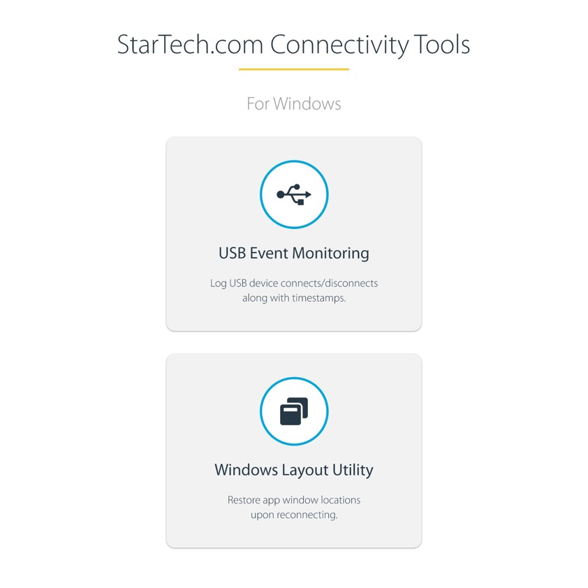 Developed to improve performance and security, StarTech.com Connectivity Tools is the only software suite on the market that works with a wide range of IT connectivity accessories. The software suite includes: