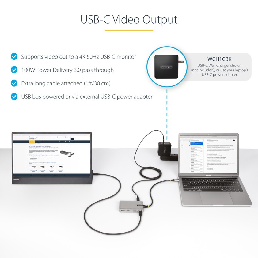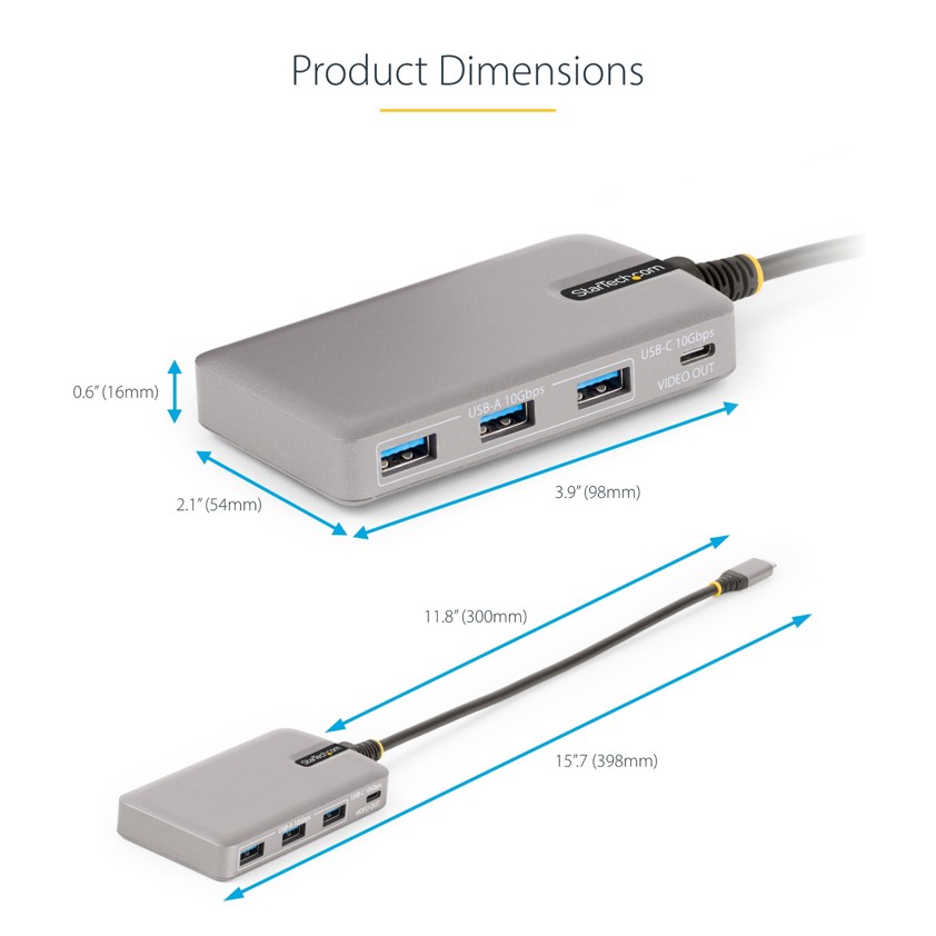 StarTech.com 4-Port USB-C Hub with USB-C DP Alt Mode Video Output 4K 60Hz - 3x USB-A, 1x USB Type-C, 100W Power Delivery Pass-Through, USB 3.2 10Gbps, 1ft/30cm Cable, Portable USB Hub