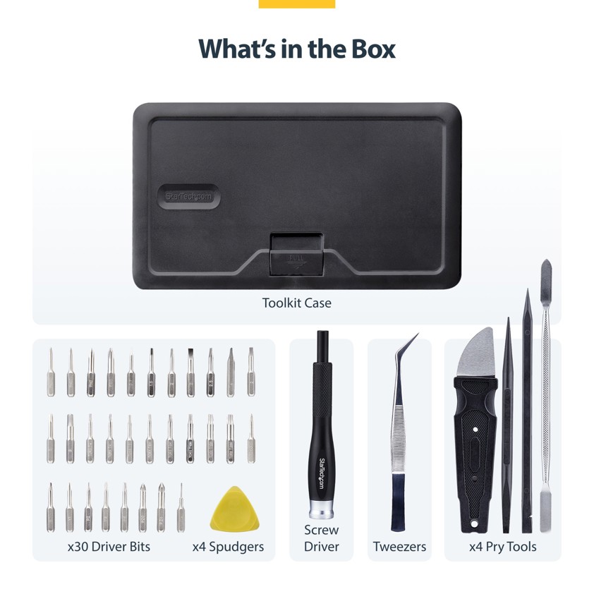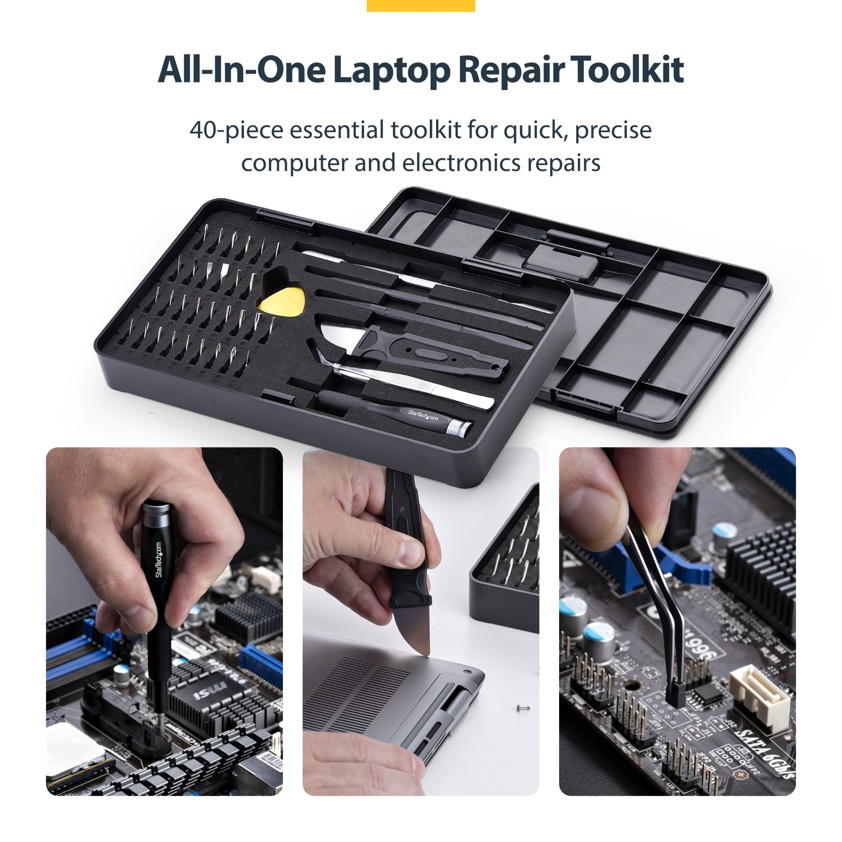 StarTech.com 40-Piece Computer Repair Toolkit for Laptop/PC/Electronics/Phone, 30-Bit Precision Screwdriver Set, Removable Lid with Magnetic Pad, Prying Tools