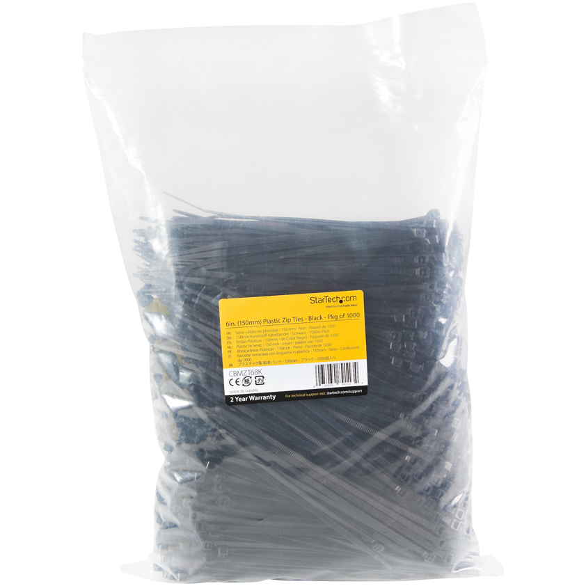 1000-pack - 6" (15 cm) Black Cable Ties (CBMZT6BK)