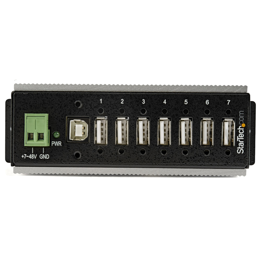 • StarTech.com 7-Port USB 2.0 Hub - Metal Industrial USB-A Hub with ESD & 350W Surge Protection - Extended Operating Temp -40 to 185°F - Din Rail/Wall/Desk Mountable - USB Expander Hub