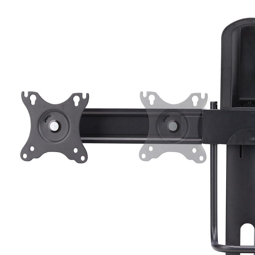 The crossbar design of this double monitor mount ensures stable, horizontal alignment of the displays, making it ideal for bezel-less or slim-bezel screens. This helps create an immersive and seamless viewing area. The VESA mounts can slide along the crossbar, allowing greater versatility with visual and ergonomic adjustments.