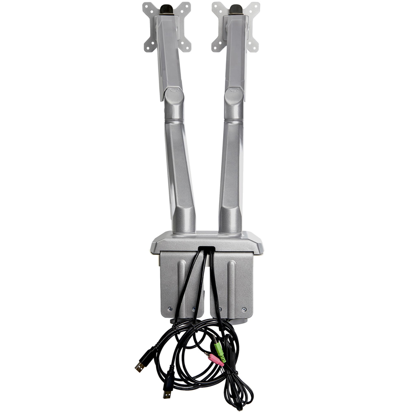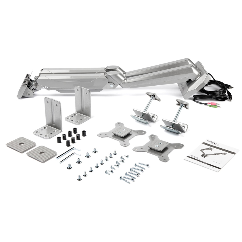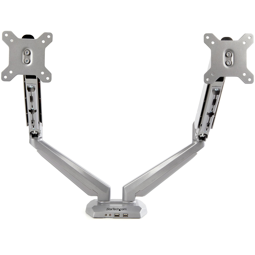 • StarTech.com Desk Mount Dual Monitor Arm with USB & Audio - Desk Clamp VESA Mount for up to 32 inch Displays - 2x USB, 2x 3.5mm audio - Ergonomic Full Motion Dual Monitor Arm - Silver