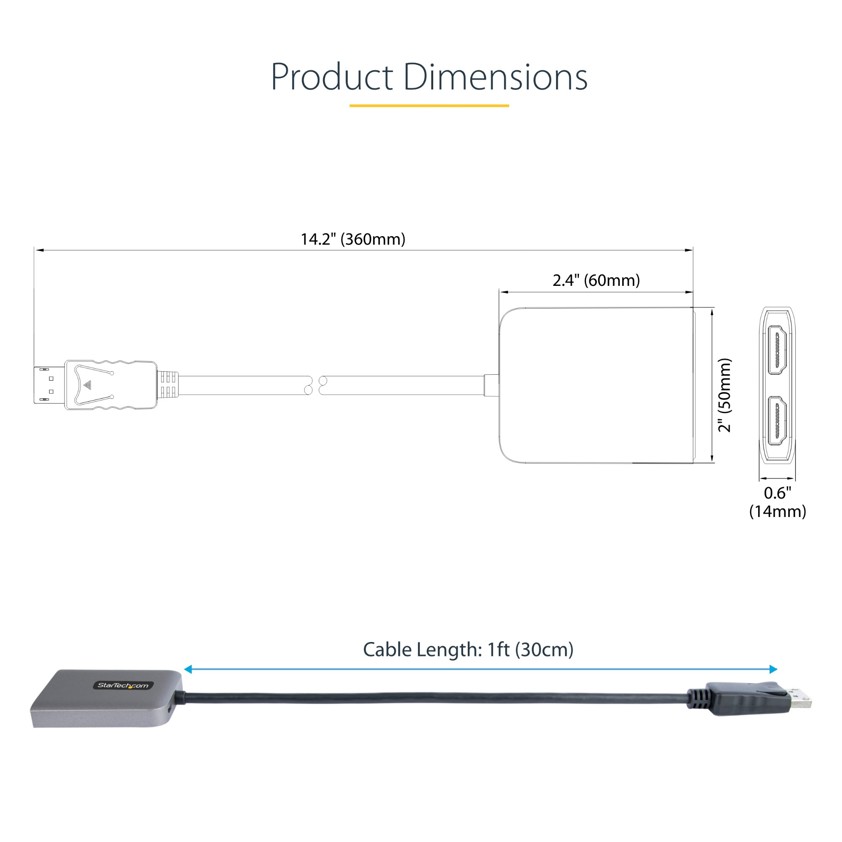 MST offers an easy setup, by natively working on any Windows device. Plug-and-play installation with no drivers or software required. A 12in (30cm) attached cable provides options for flexible installation configurations, reducing the amount of strain on ports and connectors. Additionally, this dual-monitor splitter is USB powered (USB Cable included).