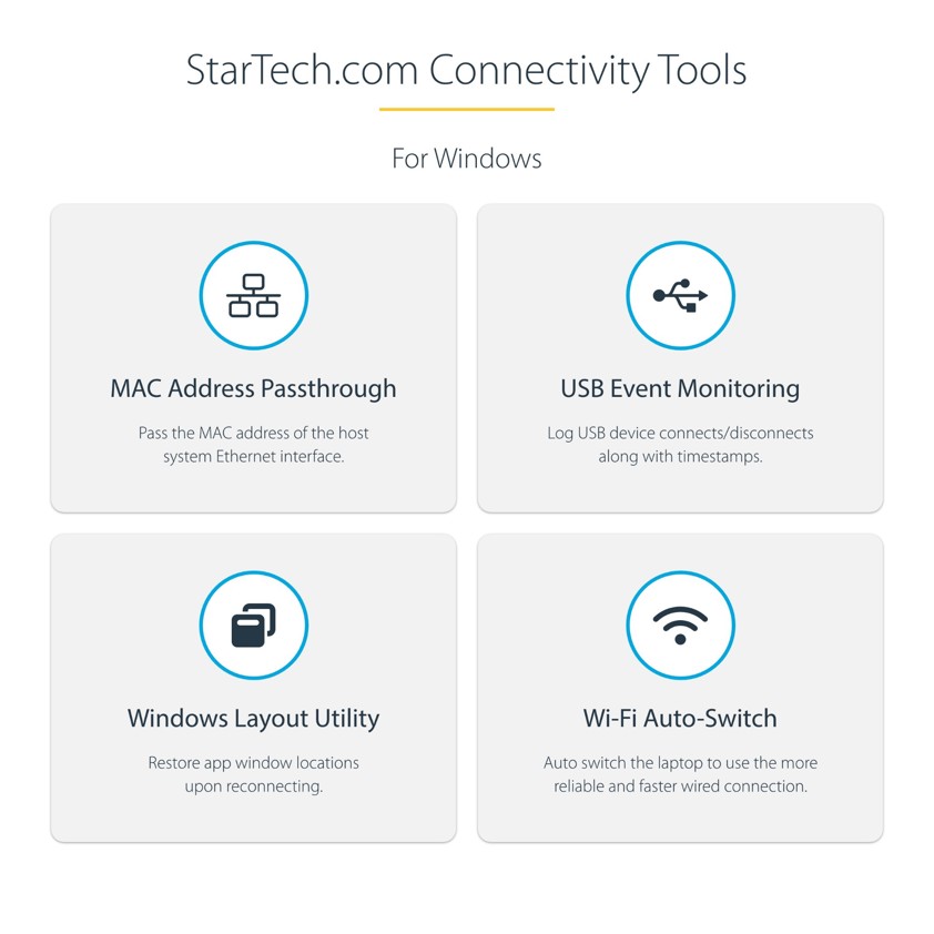 StarTech.com’s laptop docking stations can be used for cost savings and faster deployment with just a single cable. This USB 3.0 Docking Station is backed by a competitive 3-year warranty and free lifetime multilingual Technical Support.