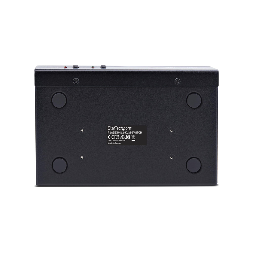 - StarTech.com P2ADDH462-KVM-SWITCH. Keyboard port type: USB, Mouse port type: USB, Video port type: HDMI/DisplayPort. HD type: 4K Ultra HD, Maximum resolution: 3840 x 2160 pixels, Data transfer rate (max): 5 Gbit/s. Product colour: Black, Mean time between failures (MTBF): 138390 h. Input voltage: 100 - 240 V, Input current: 1 A, Output voltage: 12 V. Compliance certificates: RoHS, Trade Agreements Act (TAA)