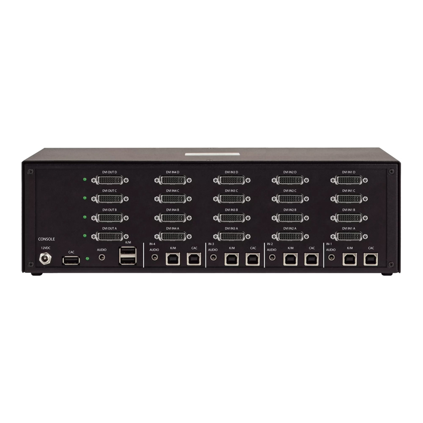Manage up to four DVI-enabled desktops, workstations, or servers from one mouse, keyboard, and four 2560x1600 60Hz monitors. Status LEDs on the console ports, CAC port, and port selection indicators provide instant visual feedback, while NIAP certification ensures complete system isolation to prevent any data transfer or leakage between connected systems. Integrated anti-tamper switches provide protection from the moment the unit leaves the factory, so any intrusion attempt, whether in storage, transit, or operation, will permanently disable the KVM and trigger clear visual and audible alerts. This makes it ideal for safeguarding operations across security domains or ensuring compliance with strict regulatory requirements.