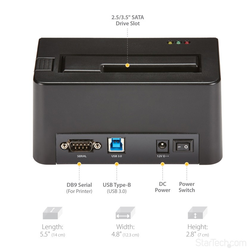 StarTech.com Single Bay Hard Drive Eraser, Standalone HDD/SSD Sanitizer, USB 3.0 to SATA II (3 Gbps), 9 Erase Modes, LCD Display, Secure Erase Hard Disk Sanitizer Dock, DB-9 Printer Port, TAA Compliant
