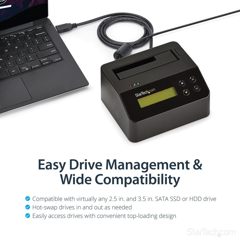 Using industry-recognized erase modes, you can rest assured that the standalone eraser securely cleans, erases or sanitizes the data from your 2.5" or 3.5" SSD or HDD.