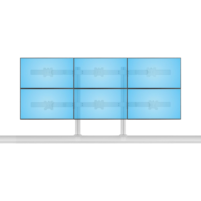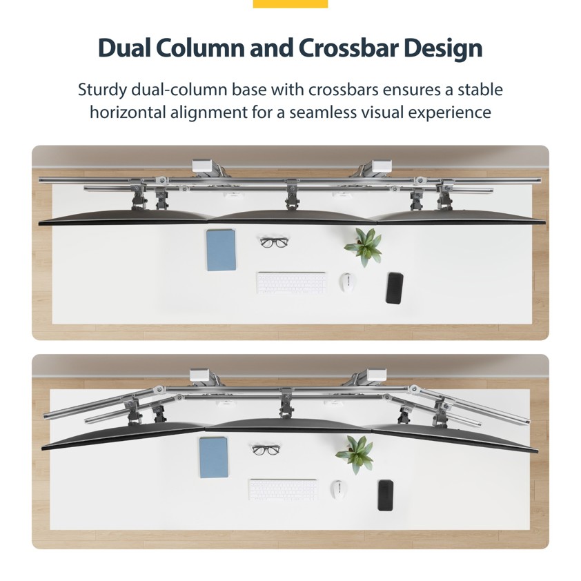 This monitor desk mount is designed to support up to six 32-inch displays, creating an ergonomic multi-monitor setup that provides a vast viewing area for productivity.