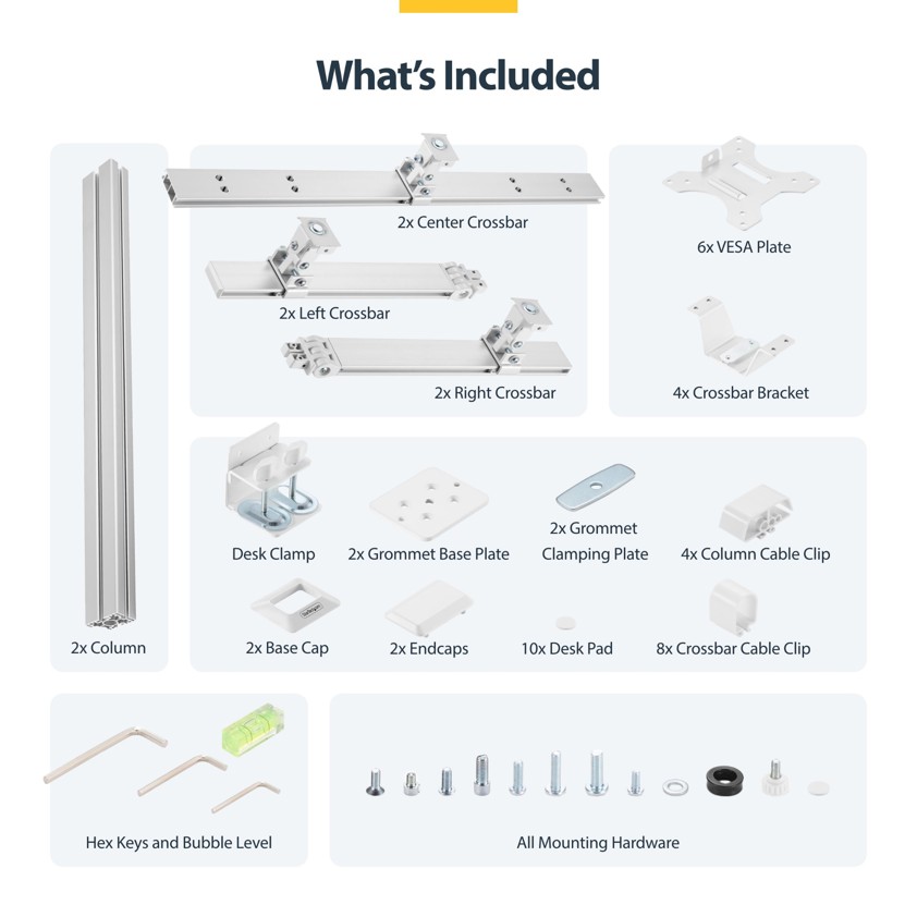 StarTech.com Six-Monitor Desk Mount with Crossbar, Up To 32-inch Computer Screens, Max 17.6lb (8kg) each, Dual Column, C-clamp/Grommet, Height Adjustable