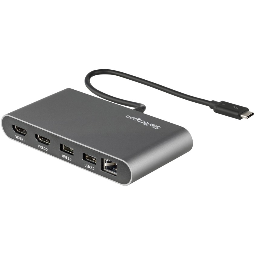 • StarTech.com Thunderbolt 3 Mini Dock - Portable Dual Monitor Docking Station w/HDMI 4K 60Hz, 2x USB-A Hub (3.0/2.0), GbE - 11in/28cm Cable - TB3 Multiport Adapter - Mac/Windows