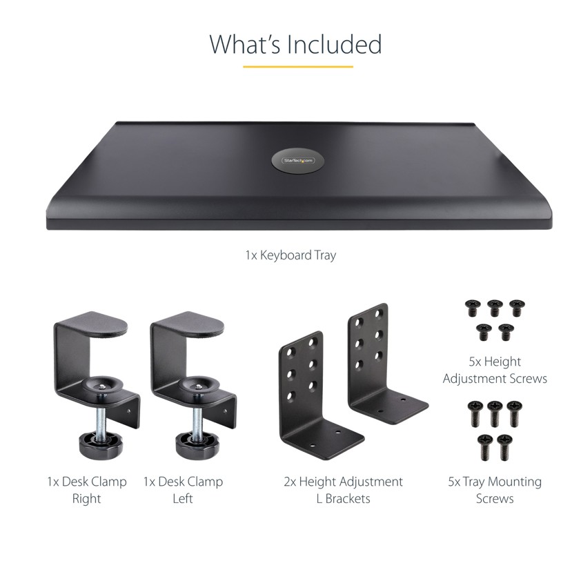 The KEYBOARD-TRAY-CLAMP1 is backed for 2-years by StarTech.com, including free lifetime 24/5 multi-lingual technical assistance.