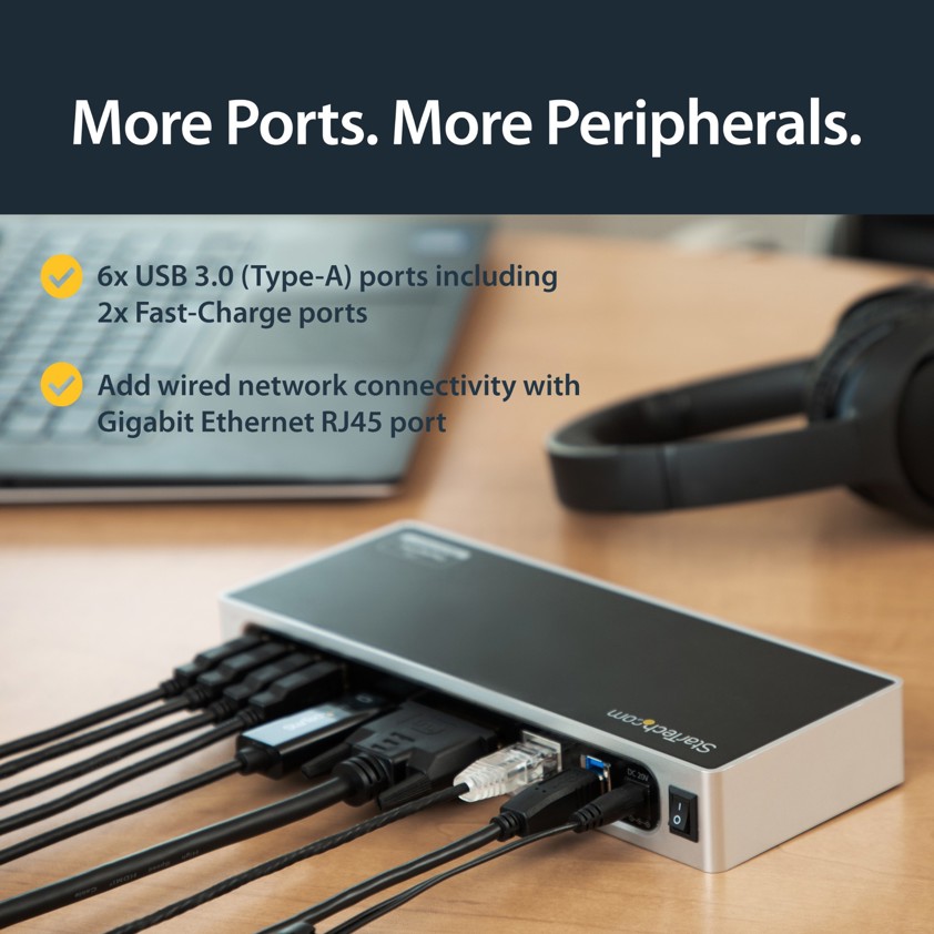 StarTech.com USB 3.0 Docking Station - Dual Monitor Laptop Docking Station with HDMI & DVI/VGA Video - 6-port USB 3.1 Gen 1 5Gbps Hub, GbE, Audio - Universal Type-A Dock - Windows & Mac