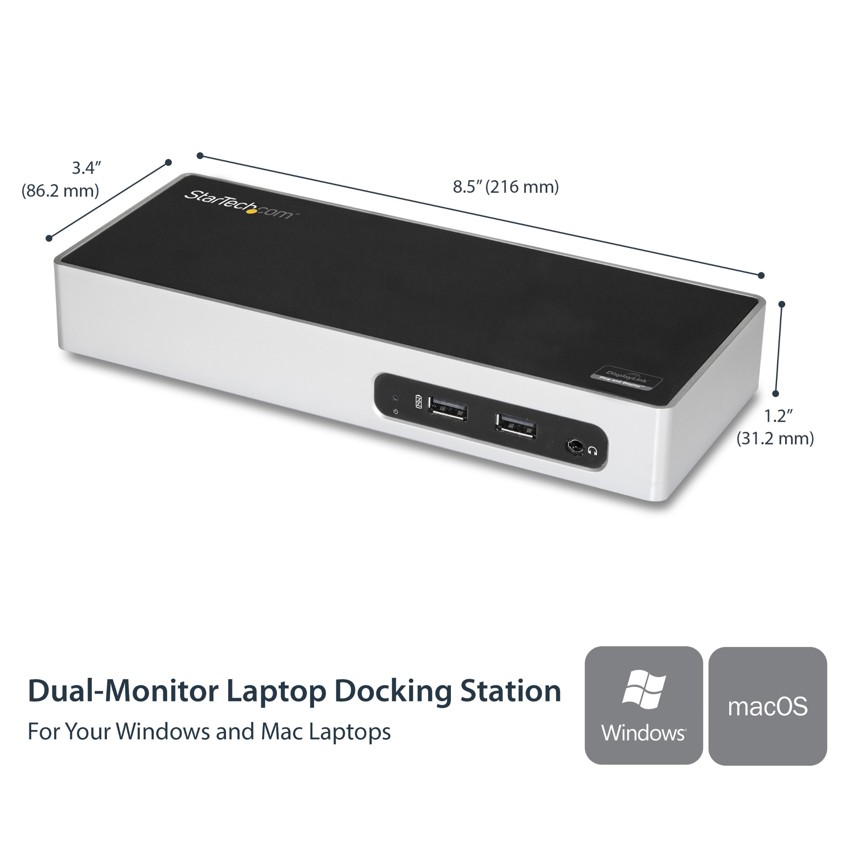 The USB 3.0 dock expands the display capabilities of your Mac or Windows laptop. Set up dual displays by connecting to one HDMI and one DVI monitor. Plus, the laptop docking station includes a DVI to VGA adapter, so you can connect to a legacy VGA monitor.
