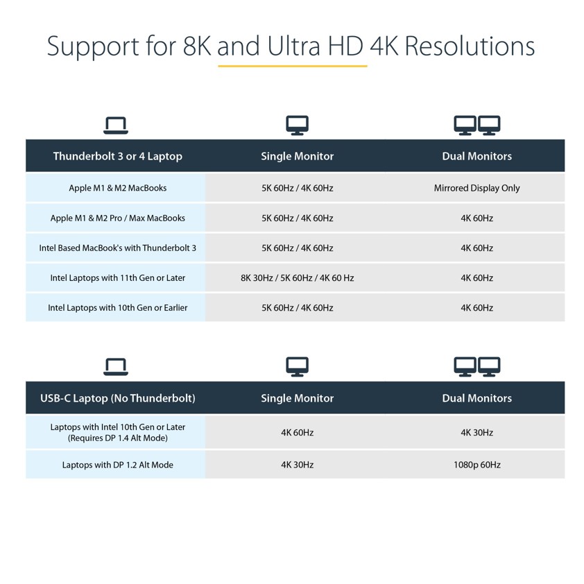 StarTech.com USB C Docking Station for Macbook Pro/Air-M1/M2/M3/M4, Thunderbolt Compatible, HDMI/DisplayPort, Dual 4K 60Hz/Single 8K, USB Type-C Laptop Dock, 96W Power Delivery, USB 10Gbps