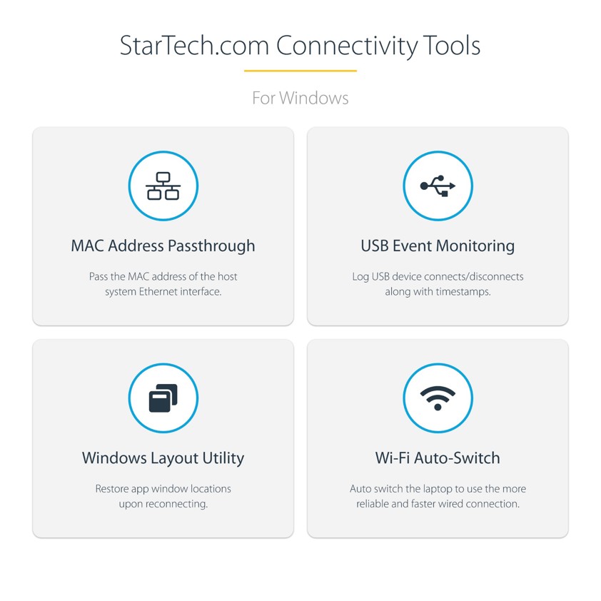 Developed to improve performance and security, StarTech.com Connectivity Tools is the only software suite on the market that works with a wide range of IT connectivity accessories. The software suite includes: