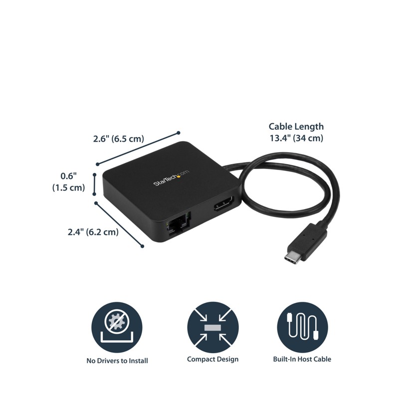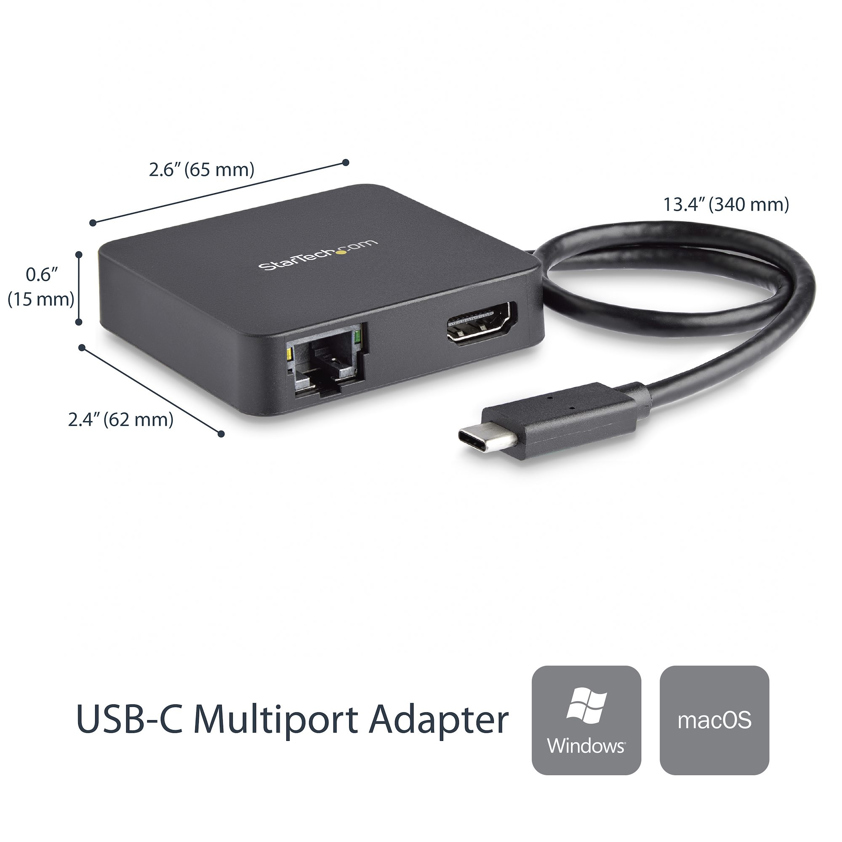 StarTech.com USB C Multiport Adapter - Portable USB-C Mini Dock 4K HDMI Video - Gigabit Ethernet, USB 3.0 Hub (1x USB-A 1x USB-C) - USB Type-C Multiport Adapter - Thunderbolt 3 Compatible