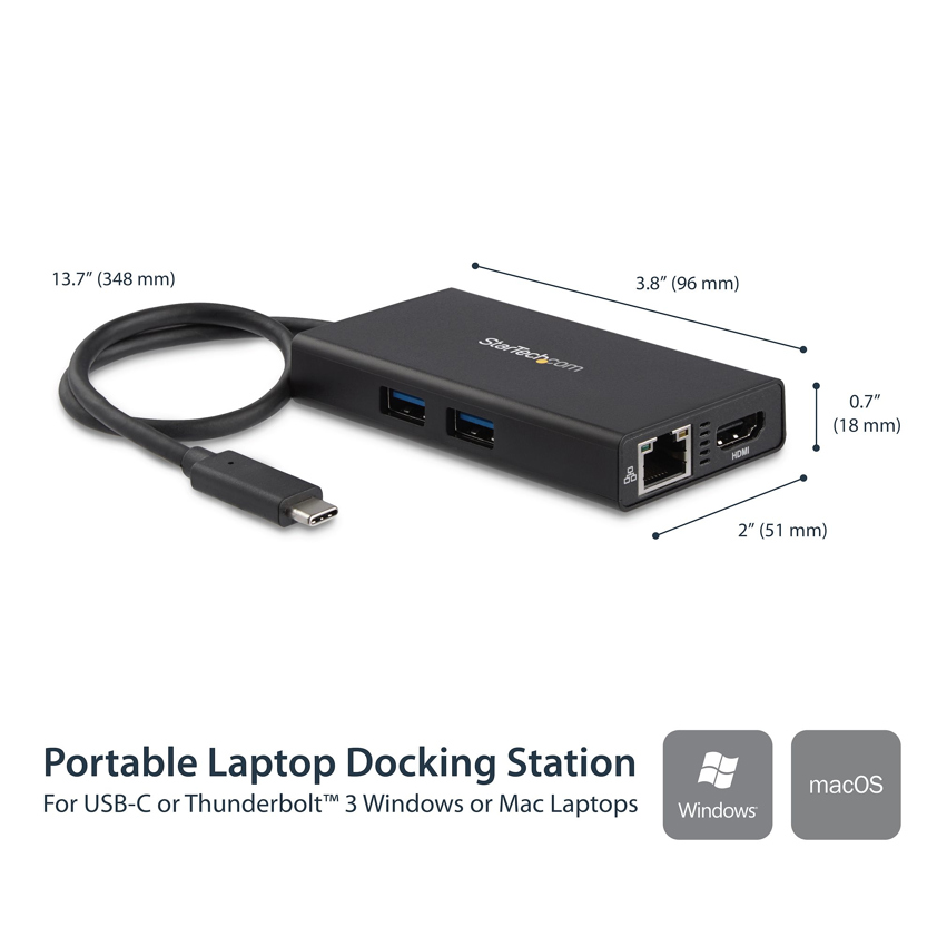 StarTech.com USB-C Multiport Adapter - USB-C Travel Docking Station with 4K HDMI - 60W Power Delivery Pass-Through, GbE, 2pt USB-A 3.0 Hub - Portable Mini USB Type-C Dock for Laptop