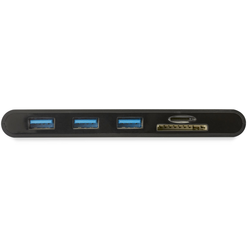 Add video output, three USB 3.0 ports, SD/micro SD card readers, and GbE port to your laptop through a single USB-C port