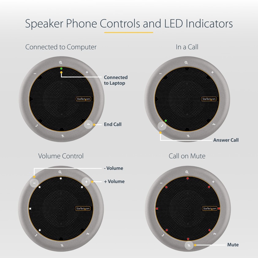 Capture voices from up to 7.5ft (2.3m) away, using the dual-omnidirectional microphones (100Hz to 10kHz) with echo cancellation and noise reduction. The microphones are ideal for capturing audio in mid-size meeting rooms (6-8 people) or from any location in a home office room. The speakers deliver 89dB (100Hz - 20kHz) distortion-free high-definition audio.