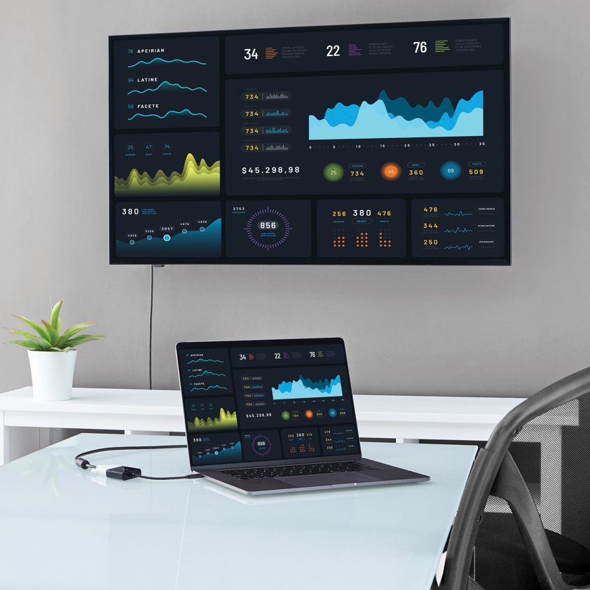 This USB Type-C™ video adapter is highly portable, with a small footprint and a lightweight design. It’s the perfect accessory for your MacBook or Chromebook, fitting easily into your laptop bag or carrying case, which is great for BYOD (Bring Your Own Device) applications at the office.