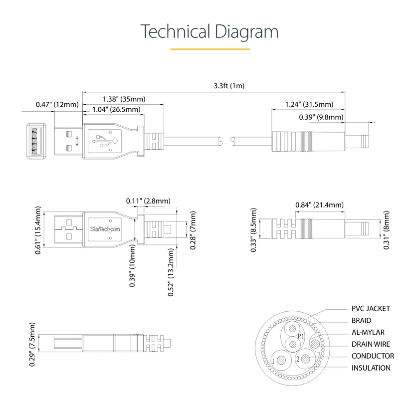 StarTech.com USB to 5.5mm Power Cable - Type N Barrel - 1m