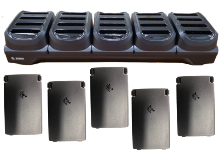 Zebra TC21/TC26 Battery charger bundle, includes 20-slot battery charger, (5) basic batteries, power supply and DC cable,
