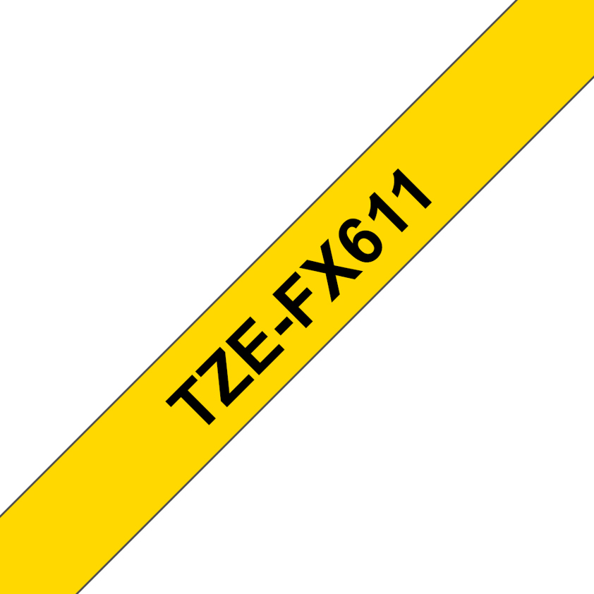 Brother TZE-FX611 DirectLabel black on yellow Laminat 6mm x 8m for Brother P-Touch TZ 3.5-18mm/6-12mm/6-18mm/6-24mm/6-36mm