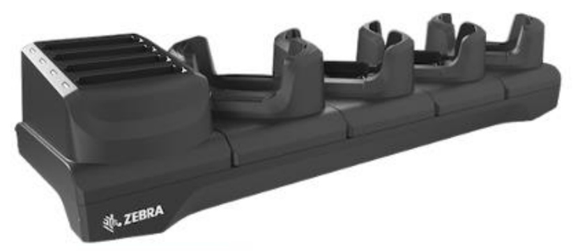 Zebra KIT : Multi-slot cradle kit to charge up to four TC53 / TC58, TC53e / TC58e / TC53e-RFID devices and four batteries, Includes four pre-installed grey shims for devices with a boot, power supply, and DC cable,